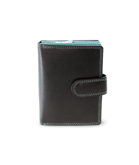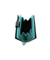 2 priehradky na bankovky, 12 vreciek na kreditné karty, 3 vnútorné vrecká, zipsové zdvojené vrecko na mince a 1 priehľadné vrecko samostatne vo veľkosti osobných dokladov. Šitie v modrej farbe.