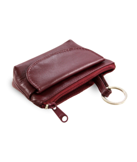 Červená kožená dvojzipsová kľúčenka 619-0370-31