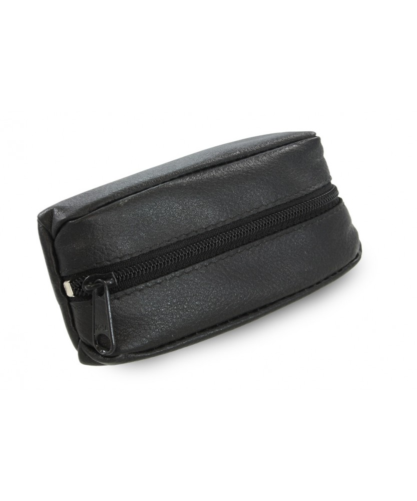 Čierna kožená kľúčenka so zipsovým a poklopovým vreckom