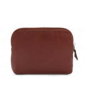 Červená kožená kľúčenka so zipsovým a poklopovým vreckom 619-0365-31