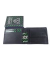 2 priehradky na bankovky, klopnové vrecko na mince, 6 vreciek na kreditné karty, občiansky alebo vodičský preukaz, 1 skryté vrecko, 1 priehľadné okno.
